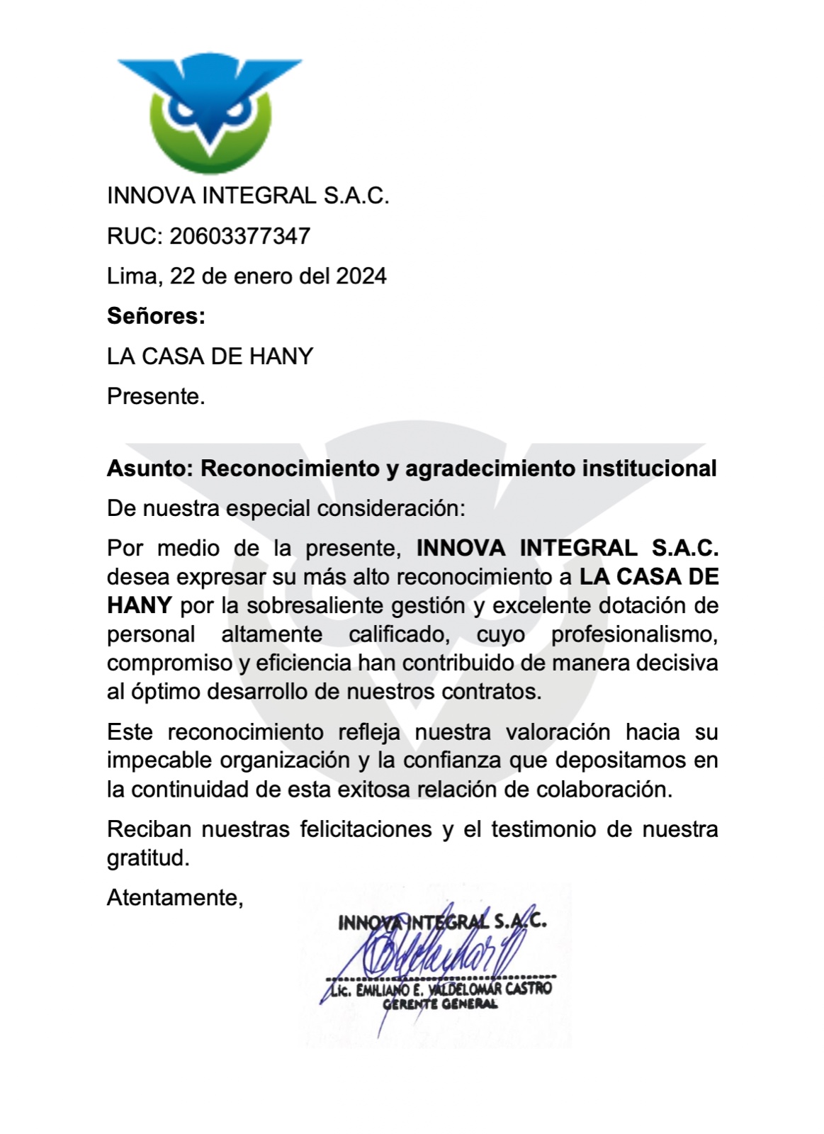 "Contratar a una nana a través de La Casa de Hany fue la mejor decisión para mi familia. Muy responsables, puntuales y con un trato increíble hacia mi hijo. ¡100% recomendados!"